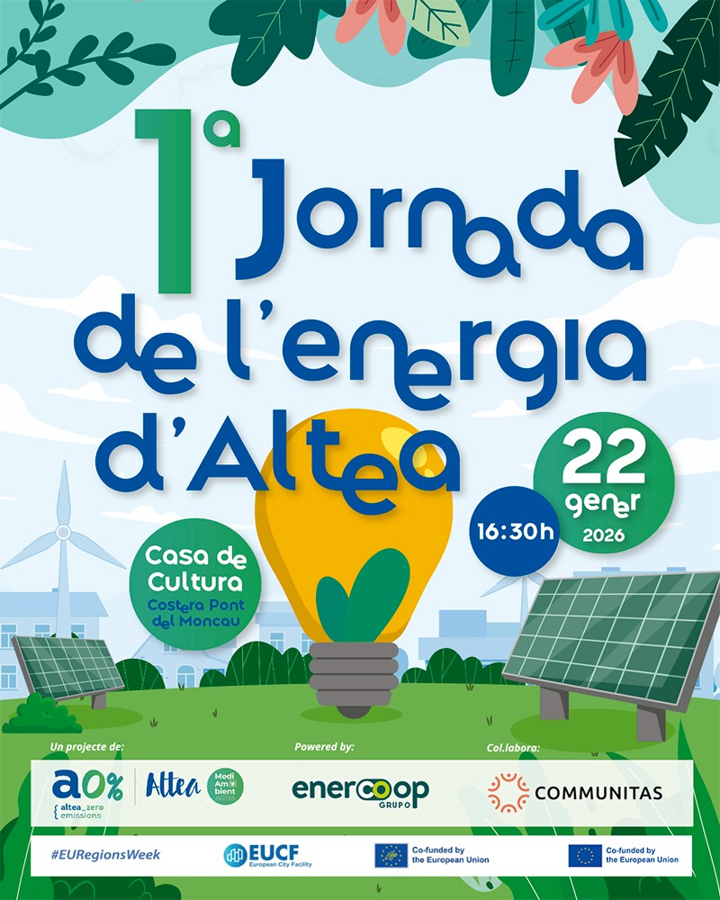 Altea celebrarà hui dijous, 22 de gener de 2026, la 1a Jornada de l’Energia Comunitària, una iniciativa oberta a tota la ciutadania que té com a objectiu informar i conscienciar sobre com reduir la factura elèctrica i avançar cap a un model energètic més just i sostenible.