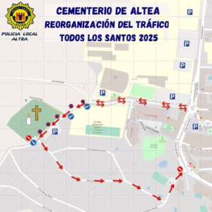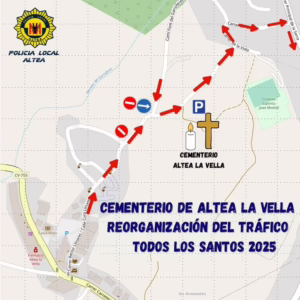 Amb motiu de la celebració de Tot Sants, Altea ha activat un dispositiu especial de trànsit i seguretat que estarà en funcionament des del dijous 31 d’octubre a les 14.00 hores fins al divendres 1 de novembre a les 21.00 hores, coincidint amb l’afluència de visitants als cementeris municipals d’Altea i Altea la Vella.