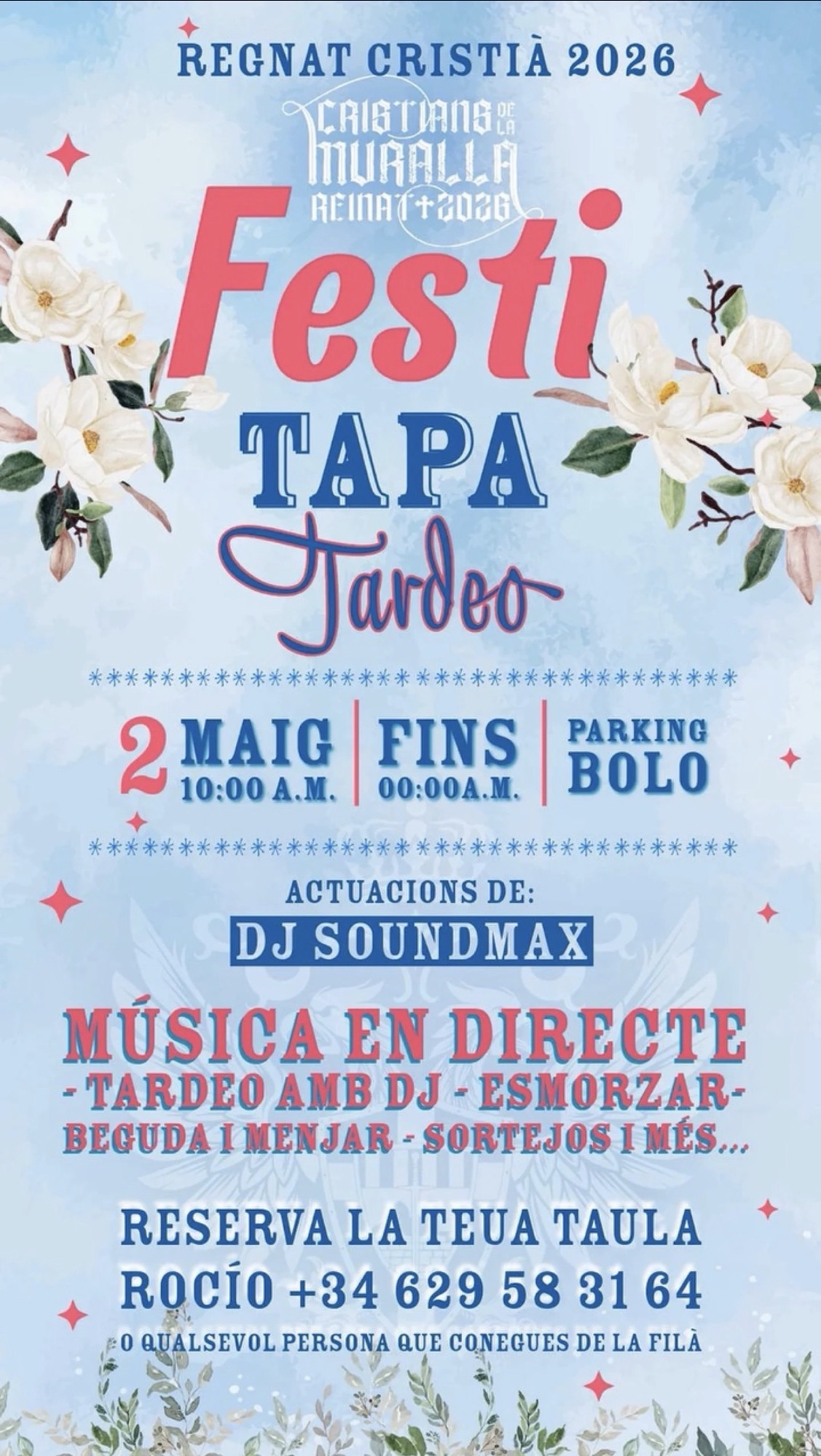 La filà Cristians de la Muralla ha anunciat la celebració del Festi Tapa Tardeo 2026, una jornada festiva que combinarà música, gastronomia i ambient fester el pròxim 2 de maig.
