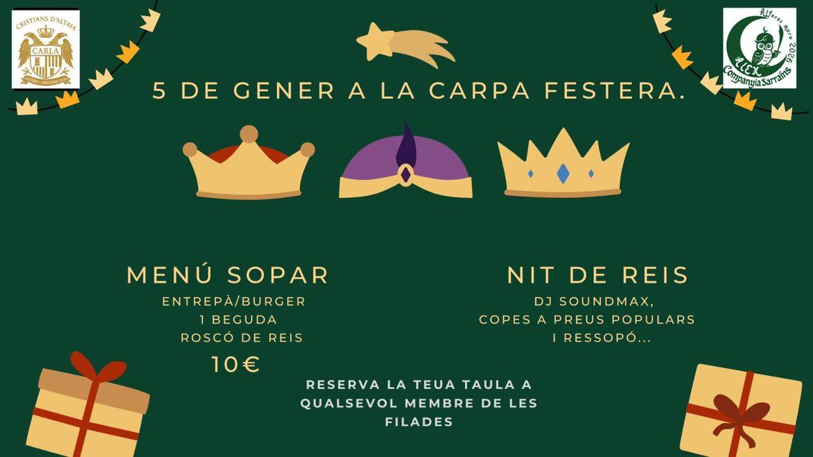 La Nit de Reis omplirà la Carpa Festera de música, sopar i tradició el 5 de gener